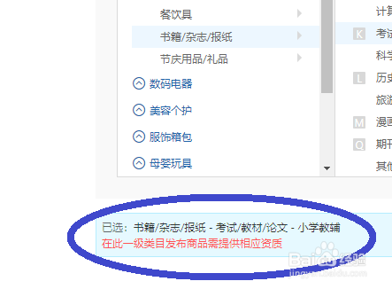 [糟糕,书籍/杂志/报纸需要相应资质]。我不管它,仍旧点击 确认发布该类商品