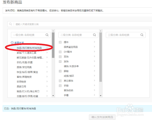 我在一级分类 家居生活点击一下,再点击更小的分类 饰品/流行首饰/时尚饰品⇢出现二级分类,供我点选