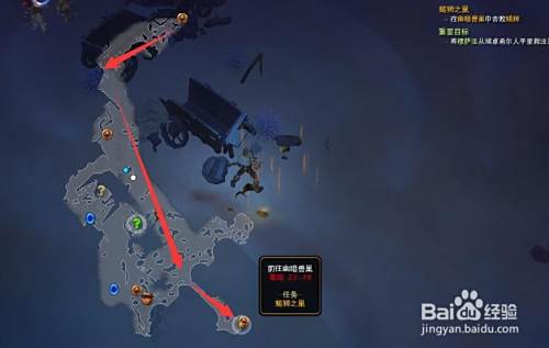 我们到达奥辛荒原以后,打开小地图,沿着我的路线可以找到任务点