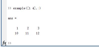 用example([1 4],:)提取矩阵的第1和4行,如图。