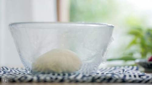 6揉成面团后,盖上保鲜膜,室温下醒发30分钟,让面团松弛。