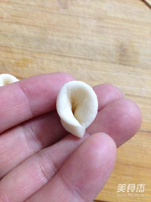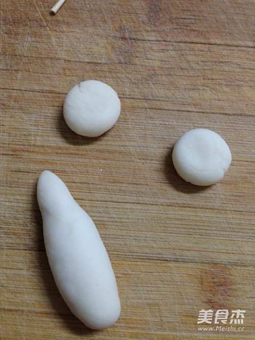 17另取一块15克重的小面团做成长锥形,取两块5克的小面团搓圆按扁