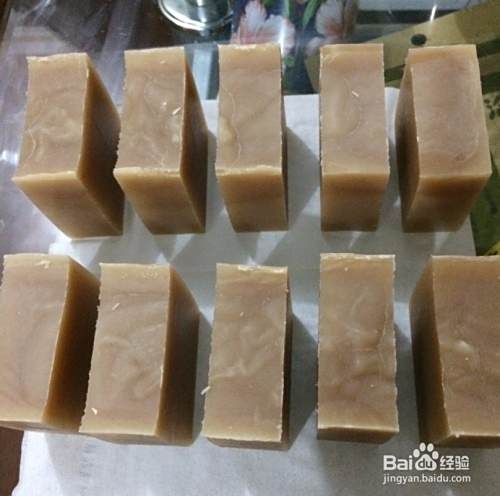 在天气比较理想的情况下,大约三天后就可以脱模了,脱模切皂后这款啤酒姜汁手工皂就制作完成了