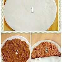 1 将饧好的面擀成厚饼(一厘米厚) 2 将调配好的红糖酥均匀的平铺到厚饼上 3 慢慢卷起。