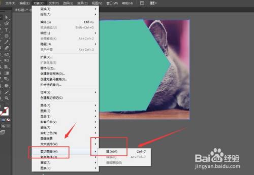 点击对象菜单栏,剪贴蒙版——建立,一定要图形在上方。