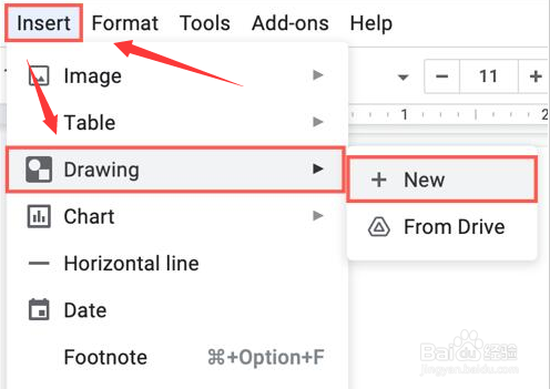 1.打开界面后,点击插入菜单,选择新建绘图按钮