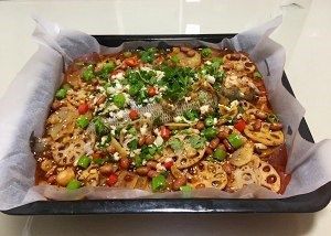 倒入适量水烧开,加少许盐、胡椒粉、鸡粉调味。再放入自己喜欢的配菜煮熟。盐别加多了,因为豆瓣酱和火锅底料都很咸。
