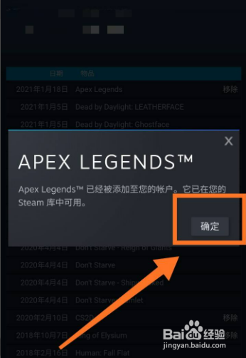 进入下一级界面后点击确定一键入库并输入steam账号。