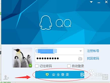 第一步:打开QQ,填写自己的QQ帐号和密码