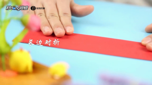 1拿出红色卡纸,长边对折。