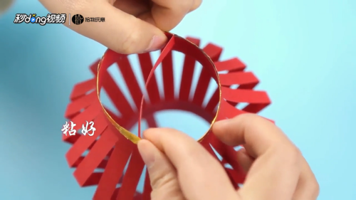 11用双面胶粘在灯笼底部。