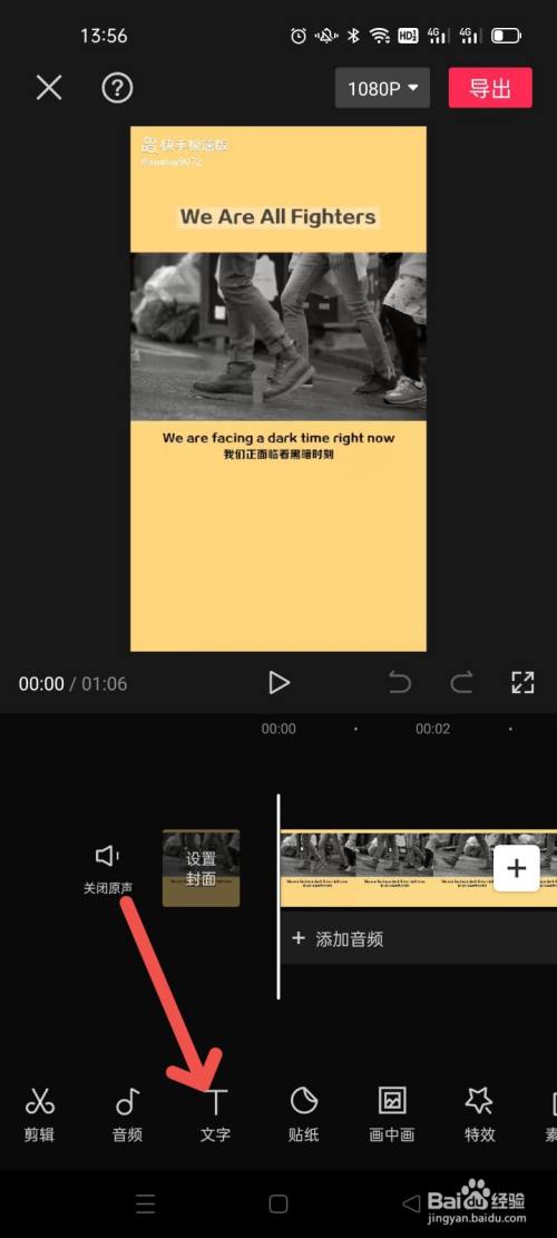 打开剪映,导入需要的视频,点击下方工具栏中的文字选项。