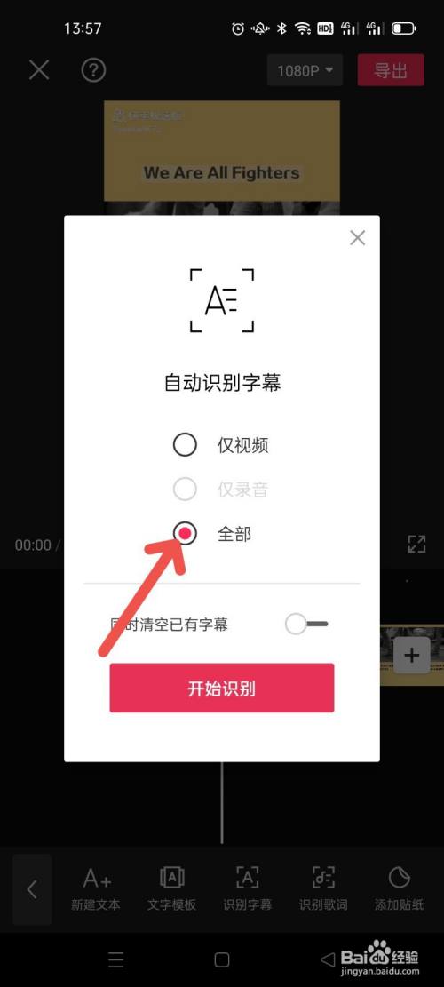 在剪映中导入需要视频,点击文字开始识别全部字幕,选择提前抖音文字就可以啦。