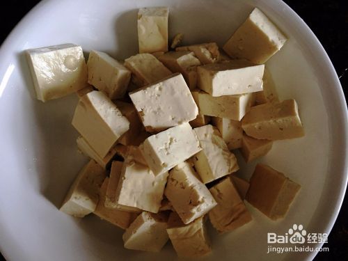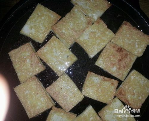 首先炒锅加热,倒入香油稍热下豆腐块,煎至两面稍黄,盛出备用。