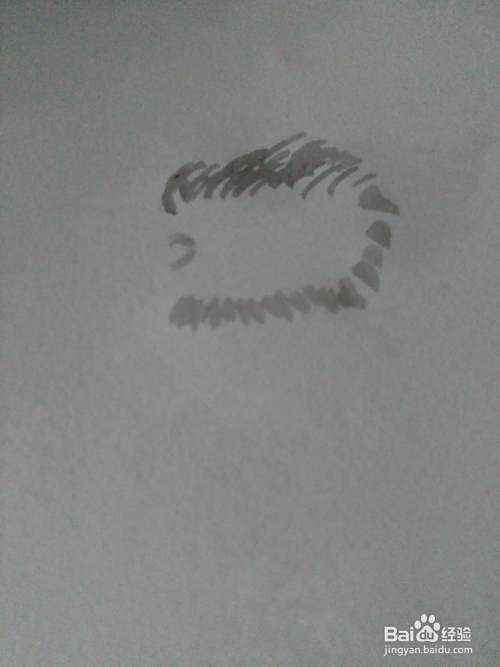 我们用灰色的水粉在画纸上画短线,然后一个接着一个画出一个椭圆的形状。