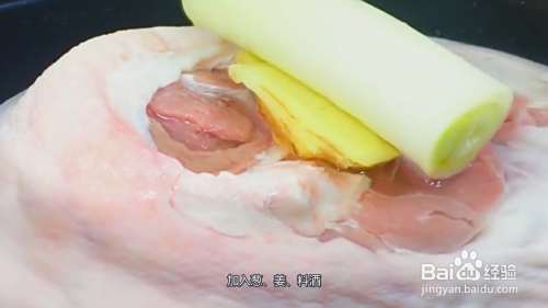 肘子凉水下干锅,加入葱、姜、料酒,煮开后,转中火继续煮15分钟。