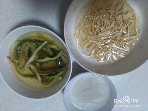 都用温水浸泡,葫芦条浸泡3小时,萝卜条浸泡5小时。