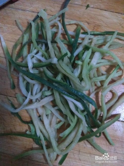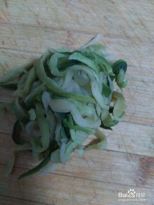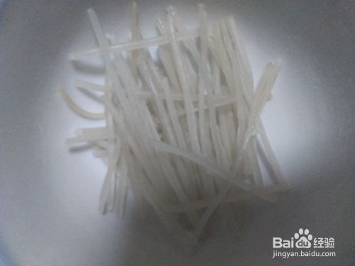 到时间攥净水,葫芦条不动,萝卜条改刀切成细丝。