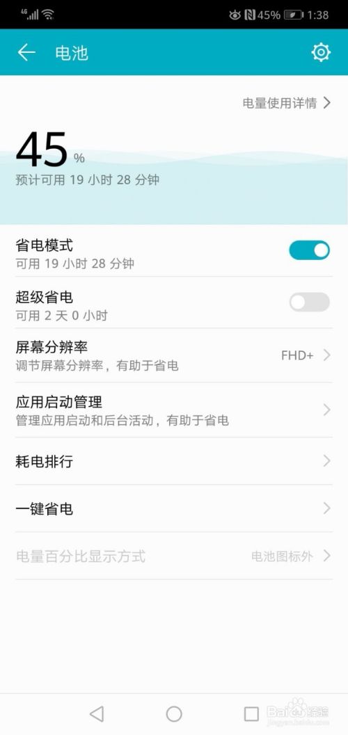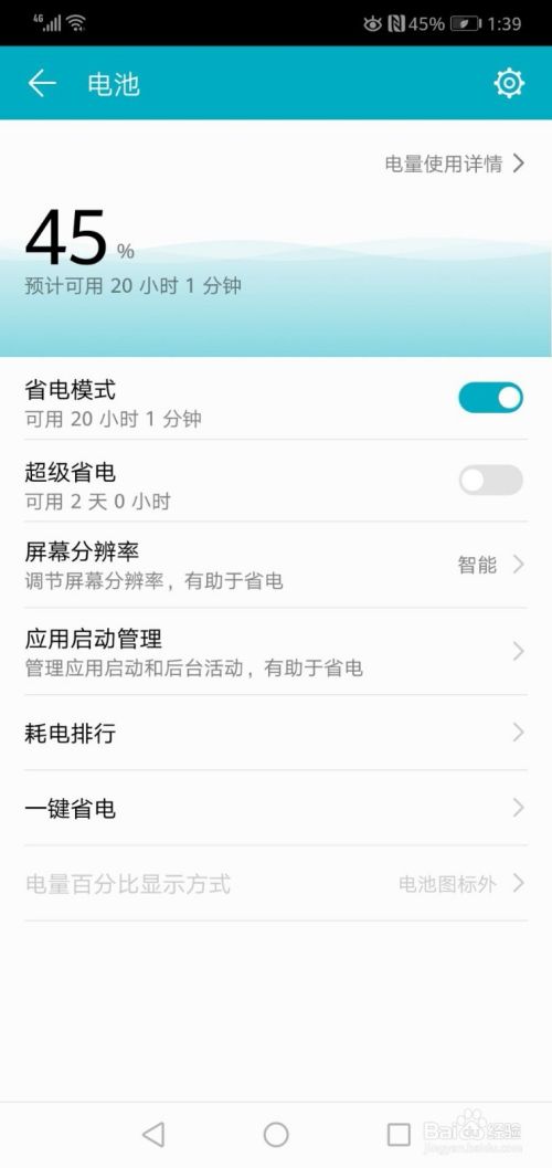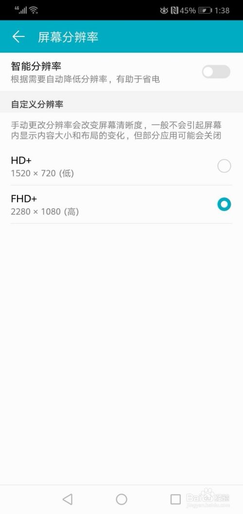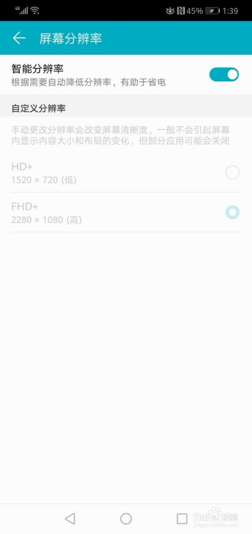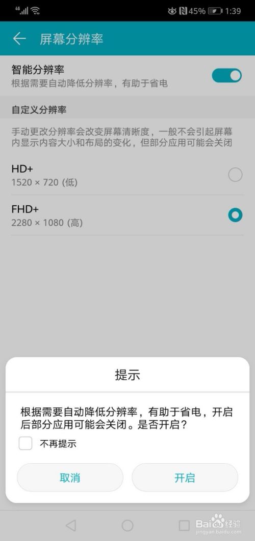 开启后,会自动返回到电池界面,屏幕分辨率右边显示改为智能。