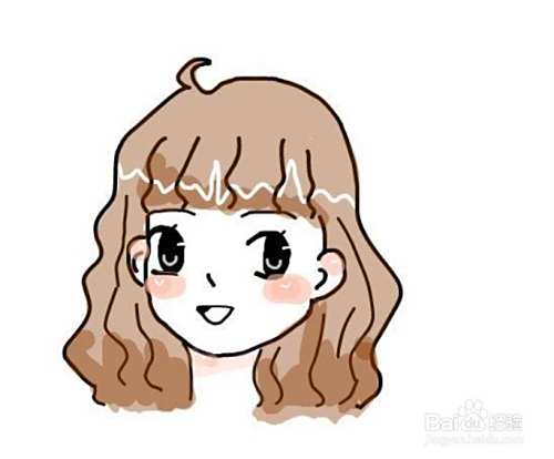最后给头发涂上颜色,再画上粉色的腮红即可。
