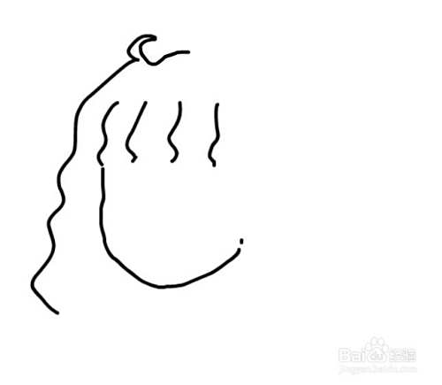 首先画女孩的头发,弯弯曲曲像波浪一样画。