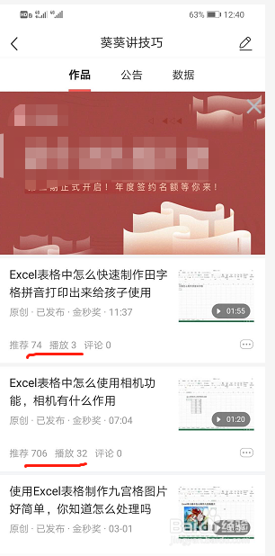 此时在作品界面可以看到作品的推荐、阅读量等