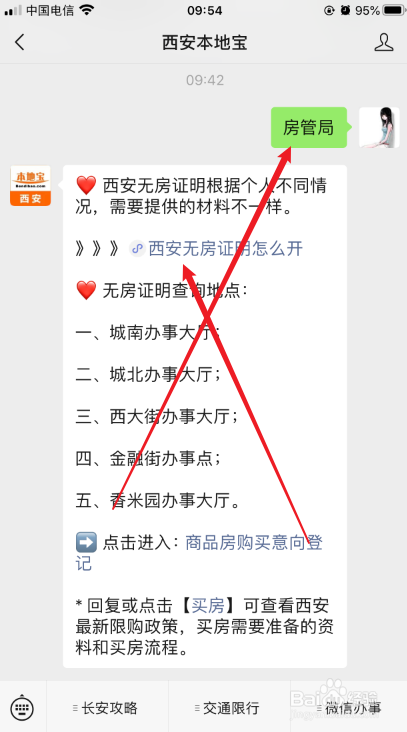 进入本地宝聊天页面发送无房证明或者房管局,点击蓝色的无房证明怎么开字样