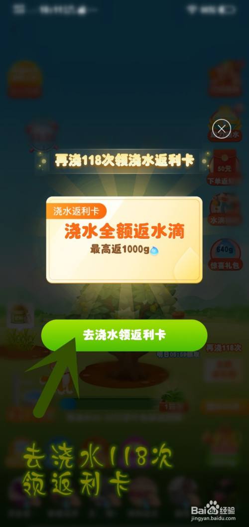 去浇水118次领返利卡。