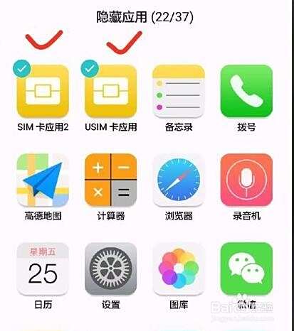 点击你需要隐藏的图标,该图标右上方就勾选住了,表示该软件已被选为隐藏,点击“确定”就ok了