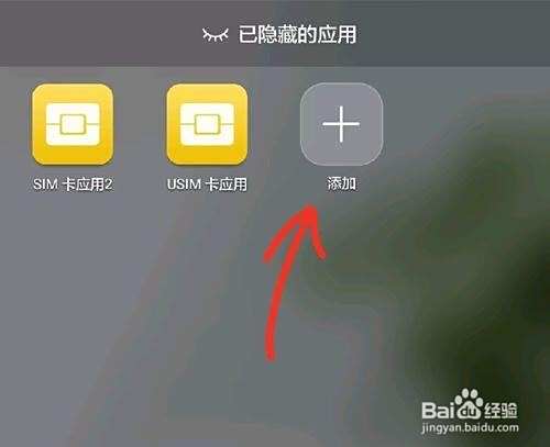 最上方有一行“已隐藏的应用”这几个字,下面有个“添加”的图标,找到该图标