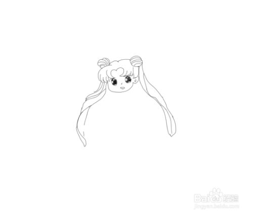 先画出女孩的头发造型,然后再在头发上面画出小女孩的两个丸子发束,如图所示: