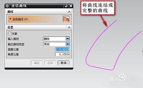 投影出最大外形线后,用连接曲线将曲线连接起来,如果中间有断点,可以用曲线的编缉命令修改后连接起来,如下图: