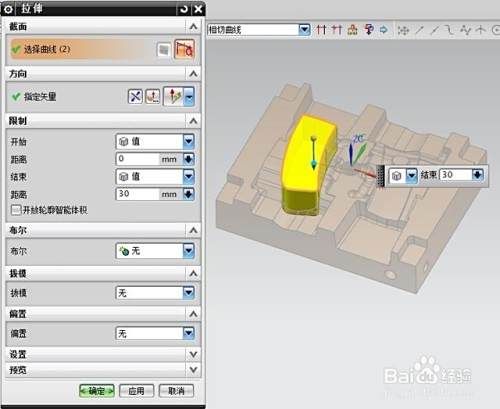 曲线相接起来后,用拉伸命令拉伸出最大外形,如下图: