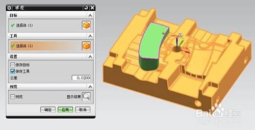 拉伸外形后,用布尔运算的求差命令求出我们所需要的电极部分,如下图: