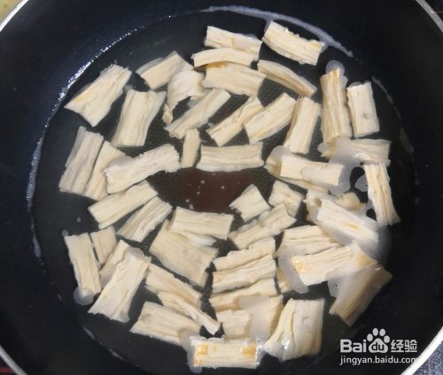 锅中放清水,水沸后放入腐竹煮一两分钟,捞出沥干水分。