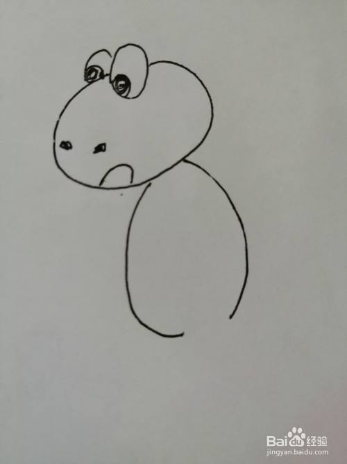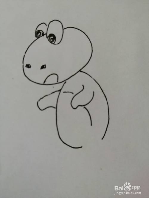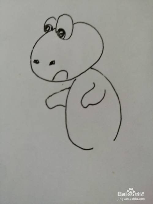 第五步,在可爱的小恐龙的头部下面画出椭圆形的身体,身体圆滚滚的。
