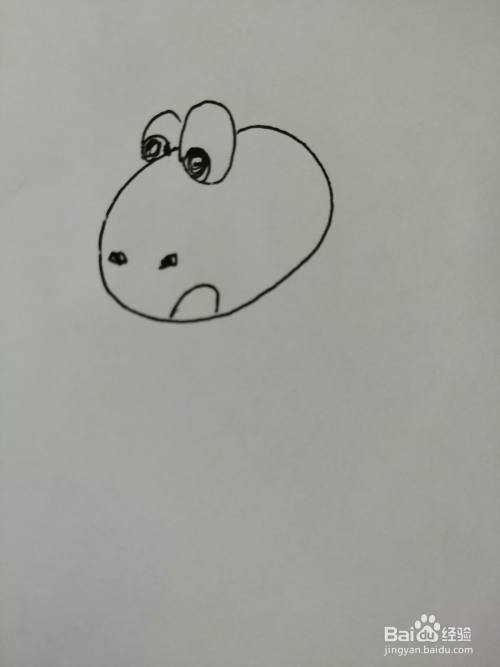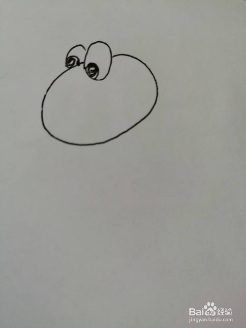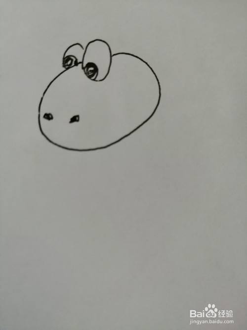 第二步,在小恐龙的头上画出两只可爱的大眼睛,小恐龙眼睛很漂亮。
