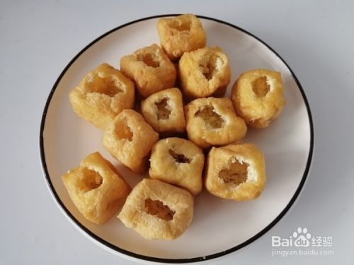 油豆腐的一面抠个洞,然后掏出里边的豆腐心,口要开的大一些,容易放肉馅
