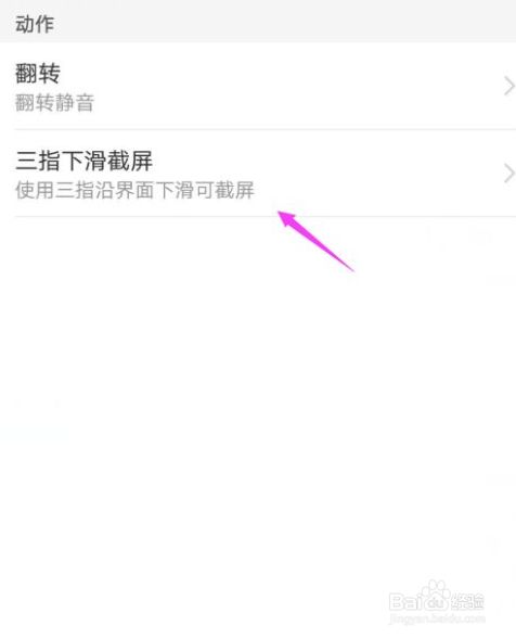进入到“手势控制”以后,点击“三指下滑截屏”。