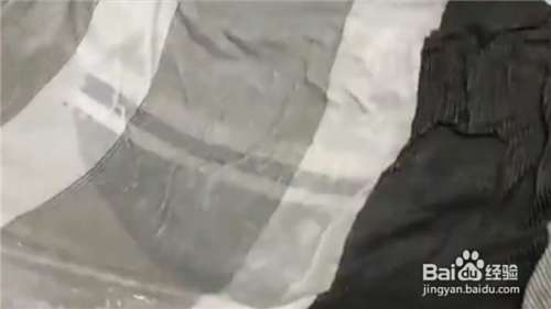 第三步:然后往纯棉床单上的陈旧血渍处倒上适量的食用碱(食用碱可以软化床单的纤维,并且具有碱性可以分解血迹)。