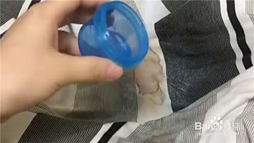 第一步:往纯棉床单上的陈旧血渍处倒上适量的洗衣液(洗衣液具有清洁去污的效果)。