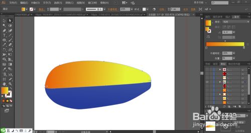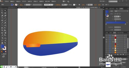 使用橙黄色的渐变填充潜水艇的上方结构件,再用蓝色的渐变填充潜水艇下方的结构件。