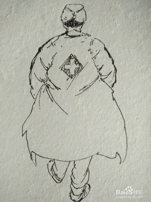 第四步画出最美逆行者后背的十字符号。