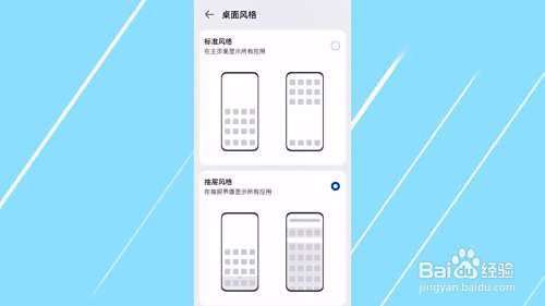 跳转到下一个新的页面之后,勾选标准风格,这样被隐藏的图标就会全部恢复在桌面上。