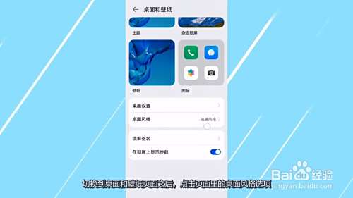 切换到桌面和壁纸页面之后,点击页面里的桌面风格选项。