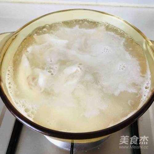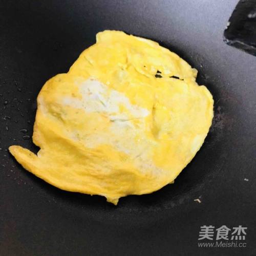 4锅里加少许油,热锅,倒入蛋液,摊蛋皮