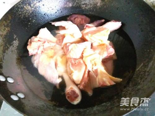 2将鸡块放入冷水锅中煮开,焯去血水。捞出洗净。