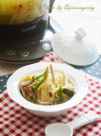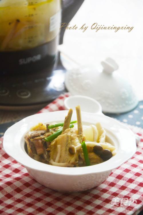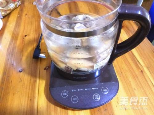 3苏泊尔养生壶中加入适量清水,放入焯好的鸡块。