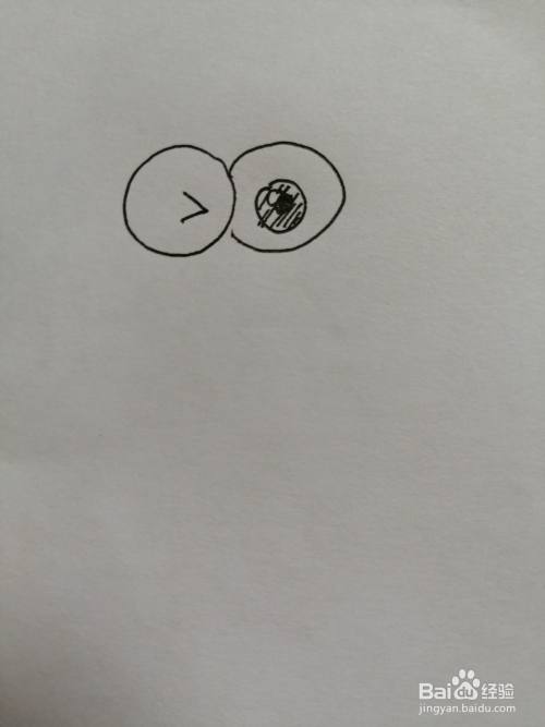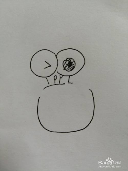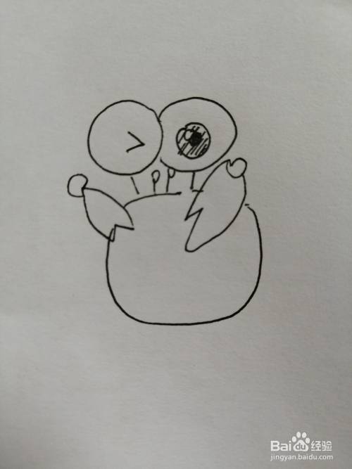 第一步,我们先把可爱的小螃蟹的两只大眼睛画出来,注意眼睛里面黑色眼珠的画法。