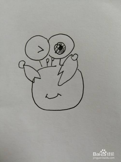 第三步,然后把可爱的小螃蟹的眼睛下面的触须画出来,注意细节的画法。